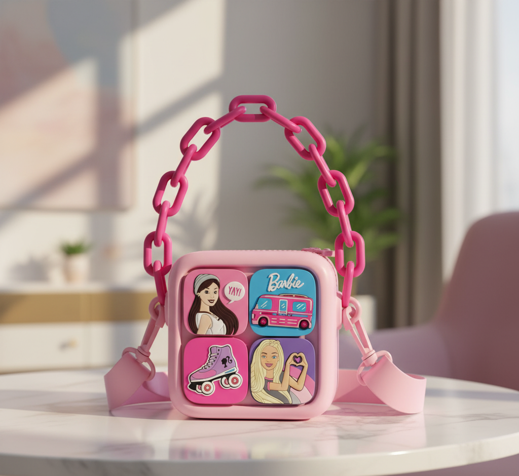 - Design: The bag features a delightful and eye-catching Barbie-themed design. It have images of Barbie dolls, iconic Barbie associated with the Barbie brand.
