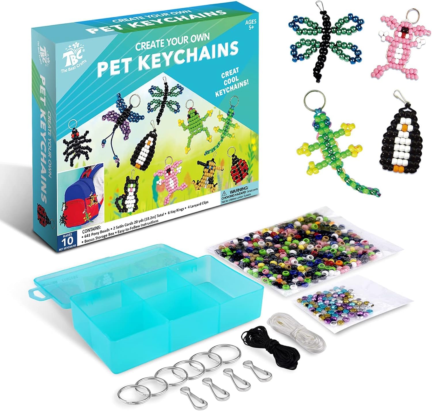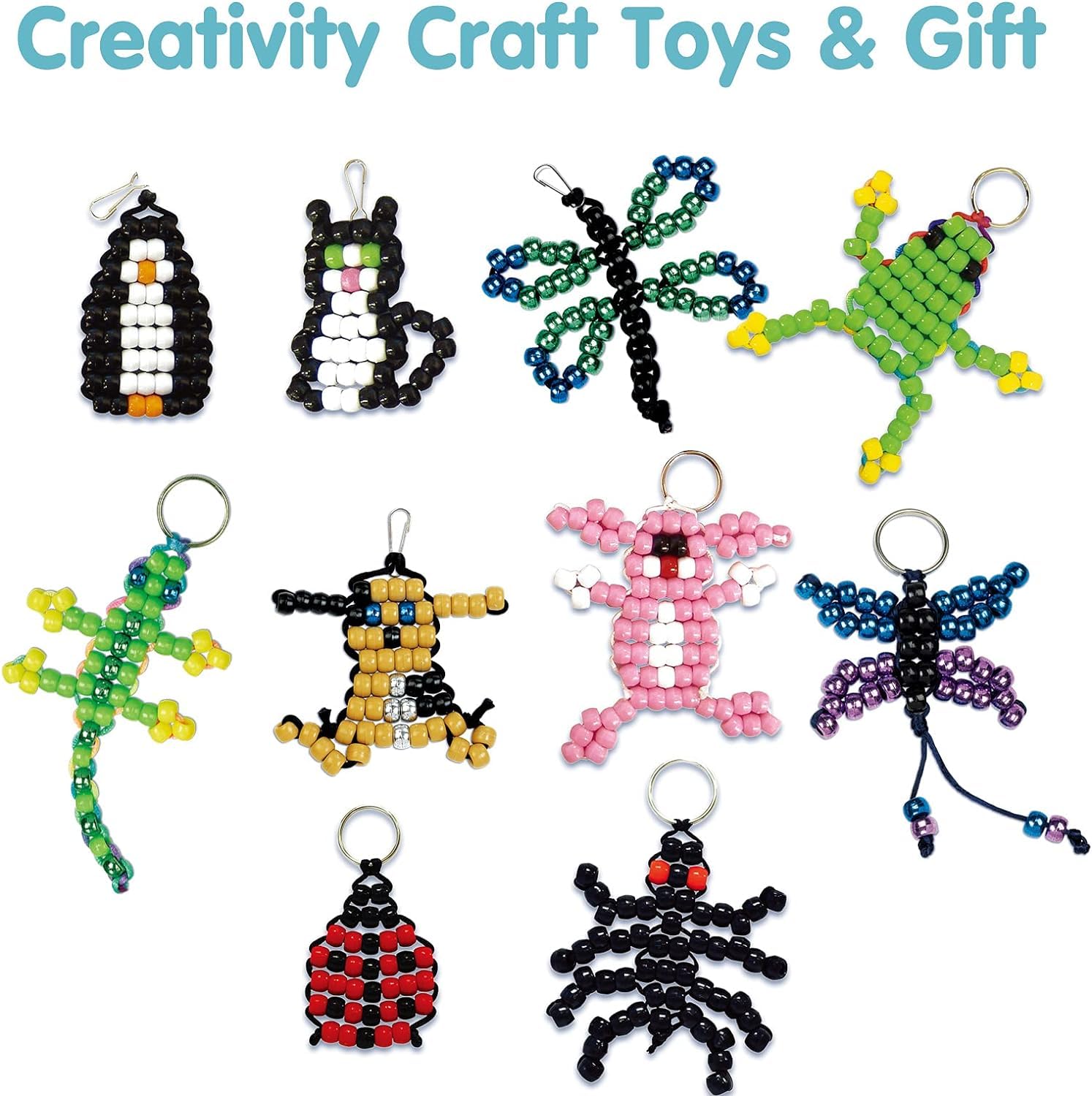 Create your own adorable pet keychains with this 641-piece DIY Bead Kit! Includes pony beads, stain cords, key rings, clips, and a storage box—everything kids need to make up to 10 unique keychains. A fun, safe, and creative gift for ages 5 and up!